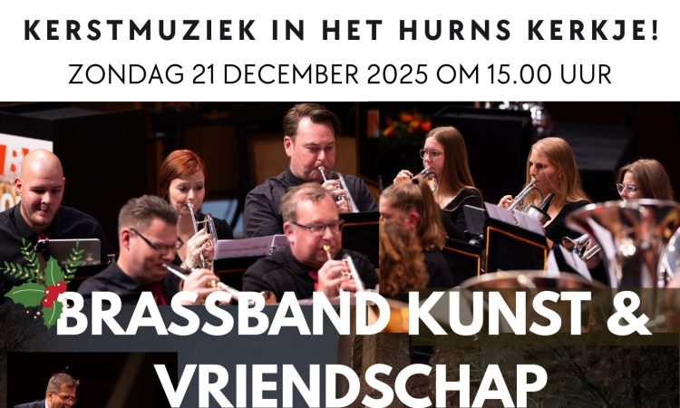 Op 21 december 2025 speelt een koperensemble van brassband Kunst & Vriendschap kerstmuziek in het Hurns Kerkje.
