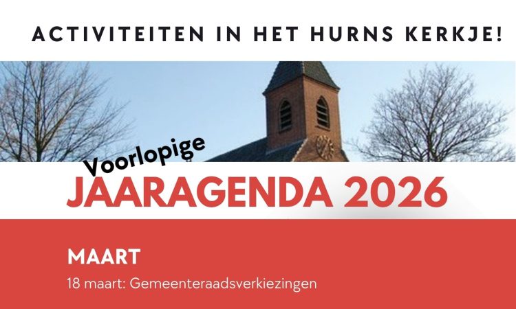 Dit is het voorlopige jaarprogramma georganiseerd door de vrijwilligers van ’t Hurns Kerkje. Dit kan in de loop van het jaar veranderen!